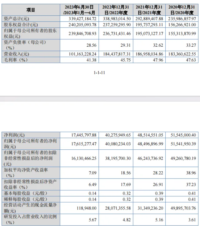 报告期内,旭辉电气营业收入分别为1.83 亿、1.87亿、1.84亿和1.01亿;扣非后归母净利润分别为4926.08万元、4624.37万元、3819.57万元和1613.05万元。公司报告期内营业收入保持平稳,但扣非归母净利润持续下滑;此外,经营活动现金流量净额持续下滑趋势。