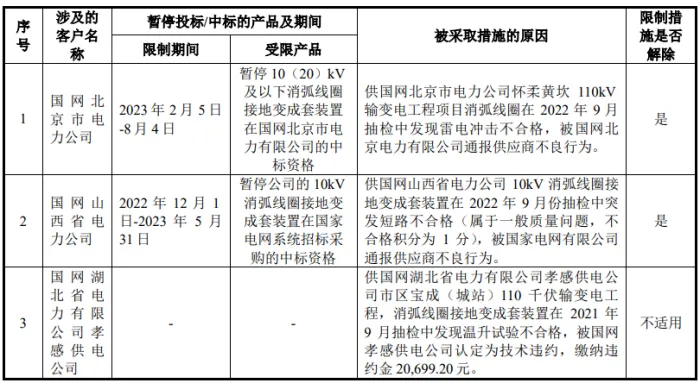 旭辉电气在问询回复中解释称:“上述不良行为中的产品质量问题属于偶发性问题,被通报后公司采取了积极的整改措施,相关事项未对公司参与招投标产生重大不利影响”。